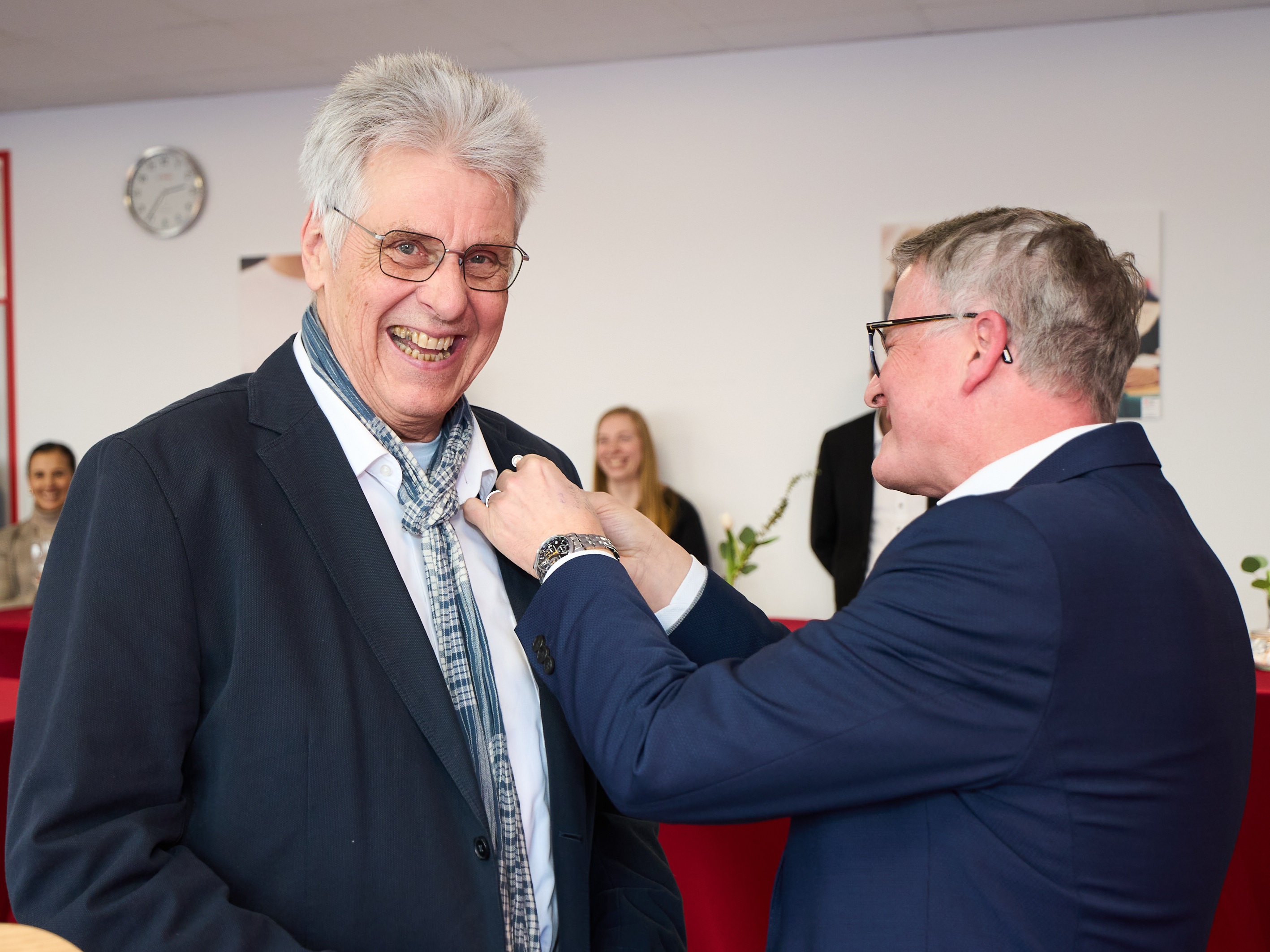 Ein besonderer Höhepunkt der Veranstaltung war die Ansprache von Dr. Carsten Müntjes aus dem Präsidium des DRK-Landesverbandes Nordrhein. Als Zeichen der Anerkennung überreichte Müntjes die Verdienstmedaille des Landesverbandes. „Mit der Verdienstmedaille ehren wir nun nicht nur eine beeindruckende Lebensleistung, sondern auch die Inspiration, die Sie für uns alle waren und weiterhin sind.“