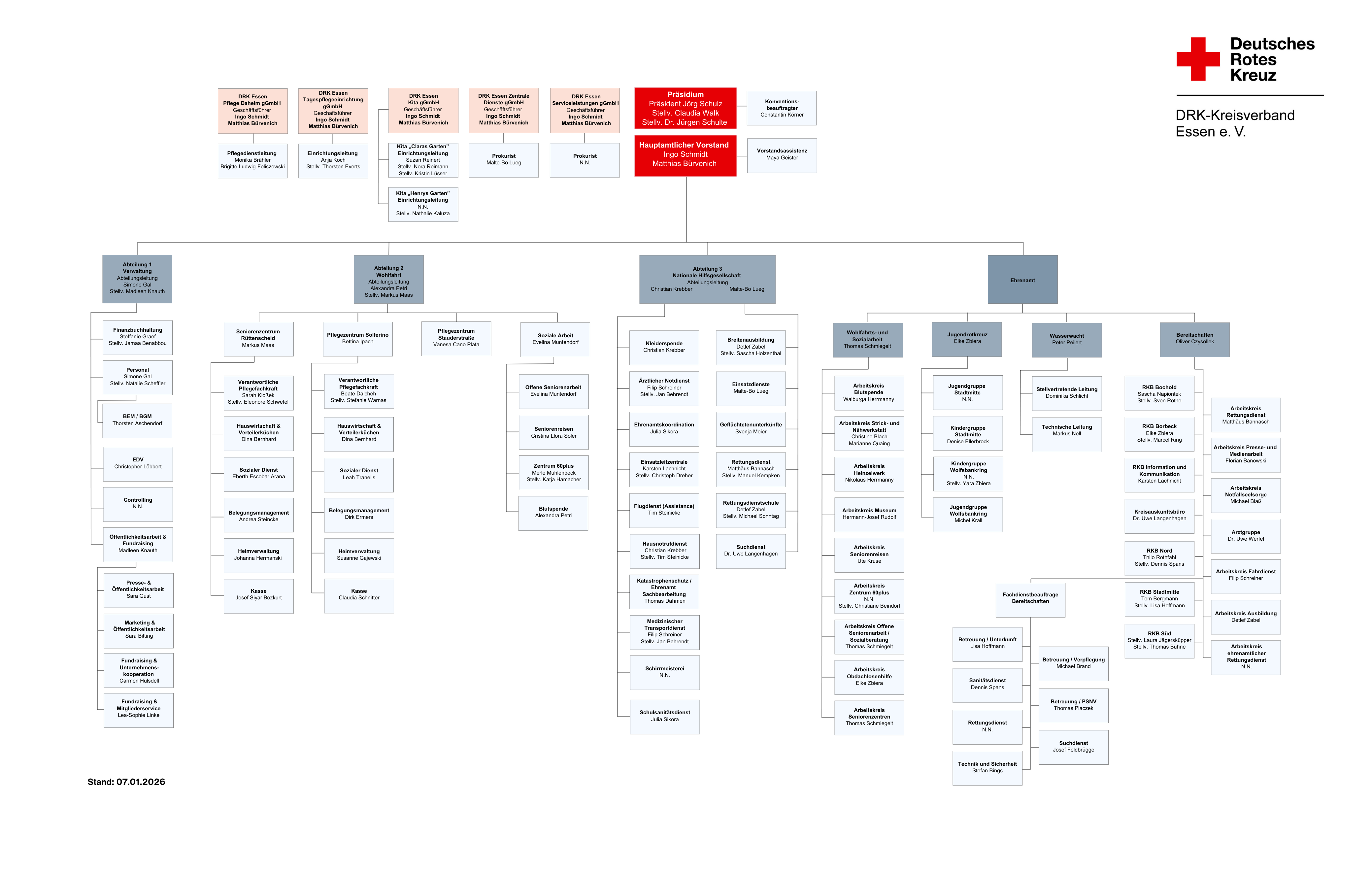 Organisationsstruktur zum 07. Januar 2026. Für eine größere Ansicht klicken Sie bitte auf das Bild oder öffnen Sie die PDF-Datei weiter unten auf dieser Seite.